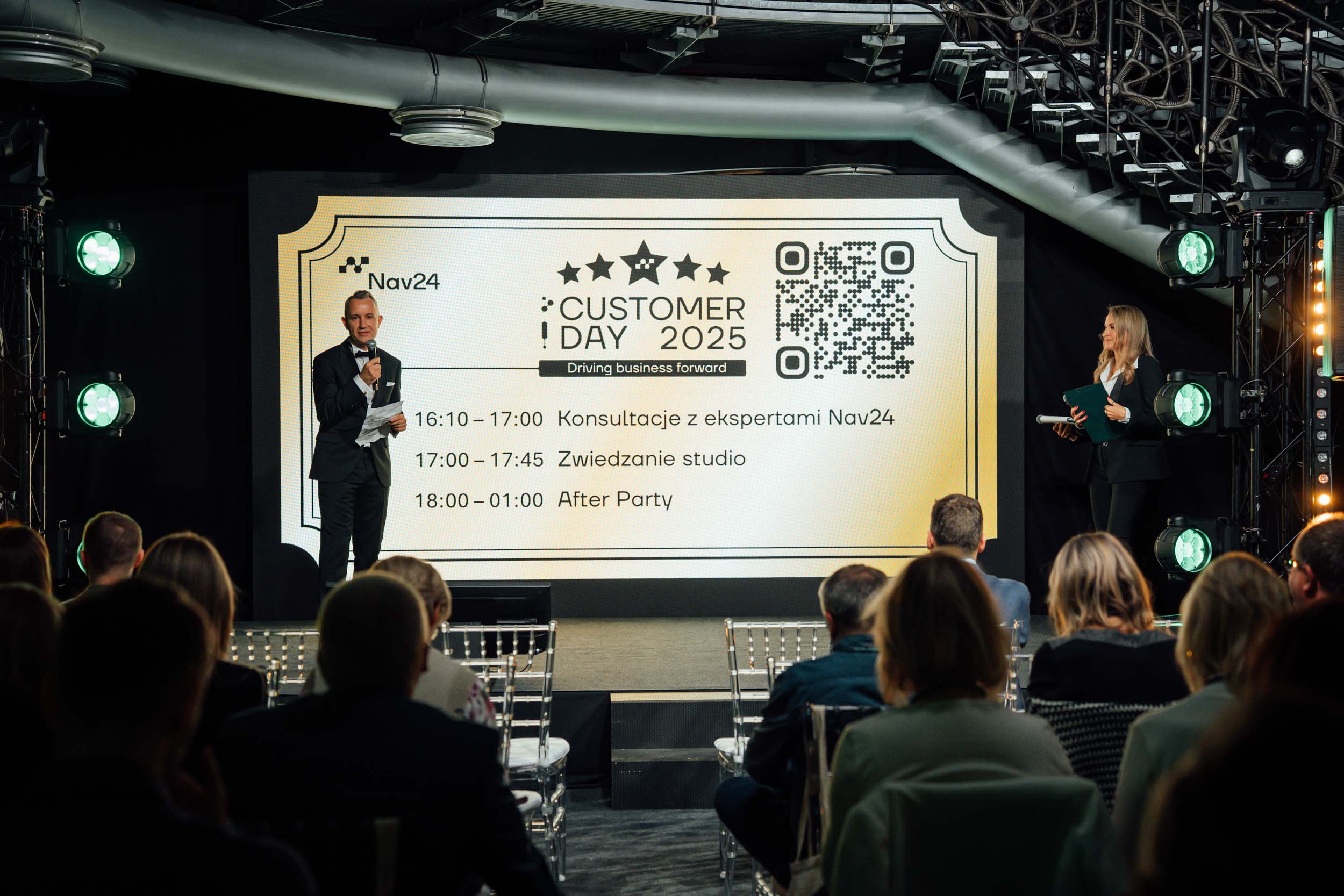 Na scenie pojawili się także nasi klienci, którzy opowiedzieli o swoich doświadczeniach we współpracy z Nav24: Monika Łoś, Dyrektor Operacyjna Sweet Factory, Aleksander Urbański, Enterprise Architect w Społecznym Instytucie Wydawniczym ZNAK, Marcin Pobłocki, Współwłaściciel MIK FOOD i Sebastian Cieślak. Kierownik produkcji w Westerberg.